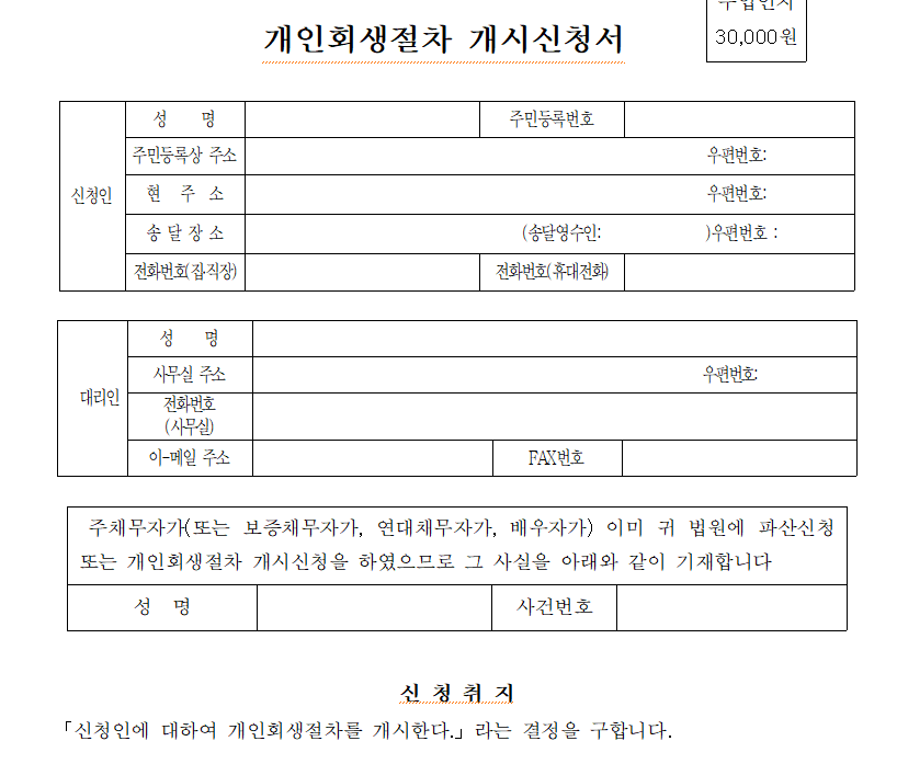 개인회생 절차 개시신청서 양식 pdf 개인회생절차_개시신청서_A5420다운로드 출처 : 서울회생법원 Share it now! AI 추천글 간이양식에 의한 개인회생절차 신청서류 작성요령 pdf 형사 합의서 양식 다운로드 hwp 검찰청 폐지 추진 본격화… 대한민국 검찰 제도가 바뀐다? 민생 소비 쿠폰 2차 신청 완벽 가이드 1인당 10만원 놓치지 마세요